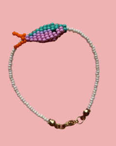 Bransoletka ze szklanych koralików z ręcznie plecioną rybką