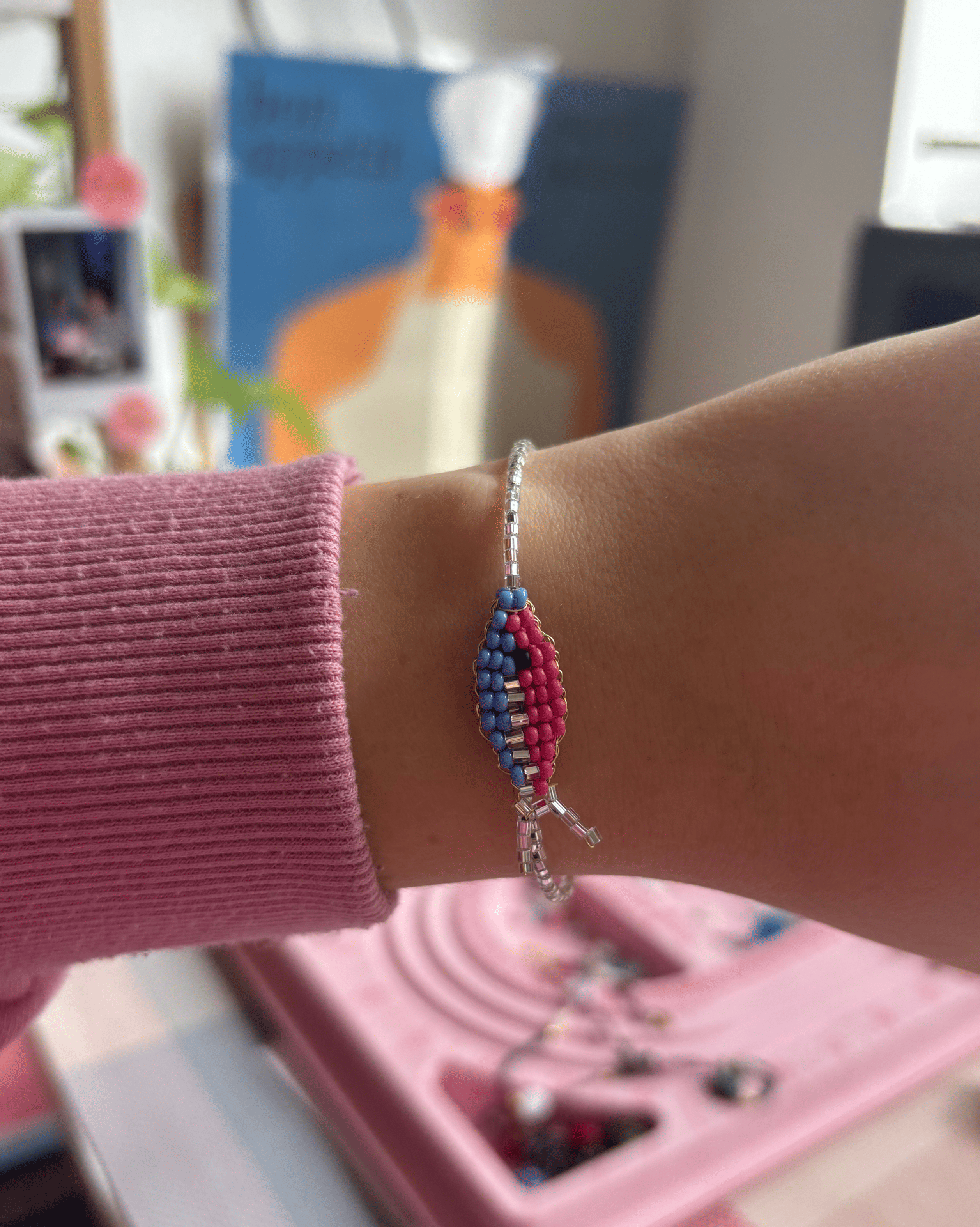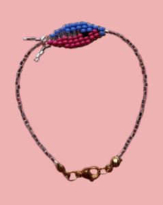 Bransoletka ze szklanych koralików z ręcznie plecioną rybką