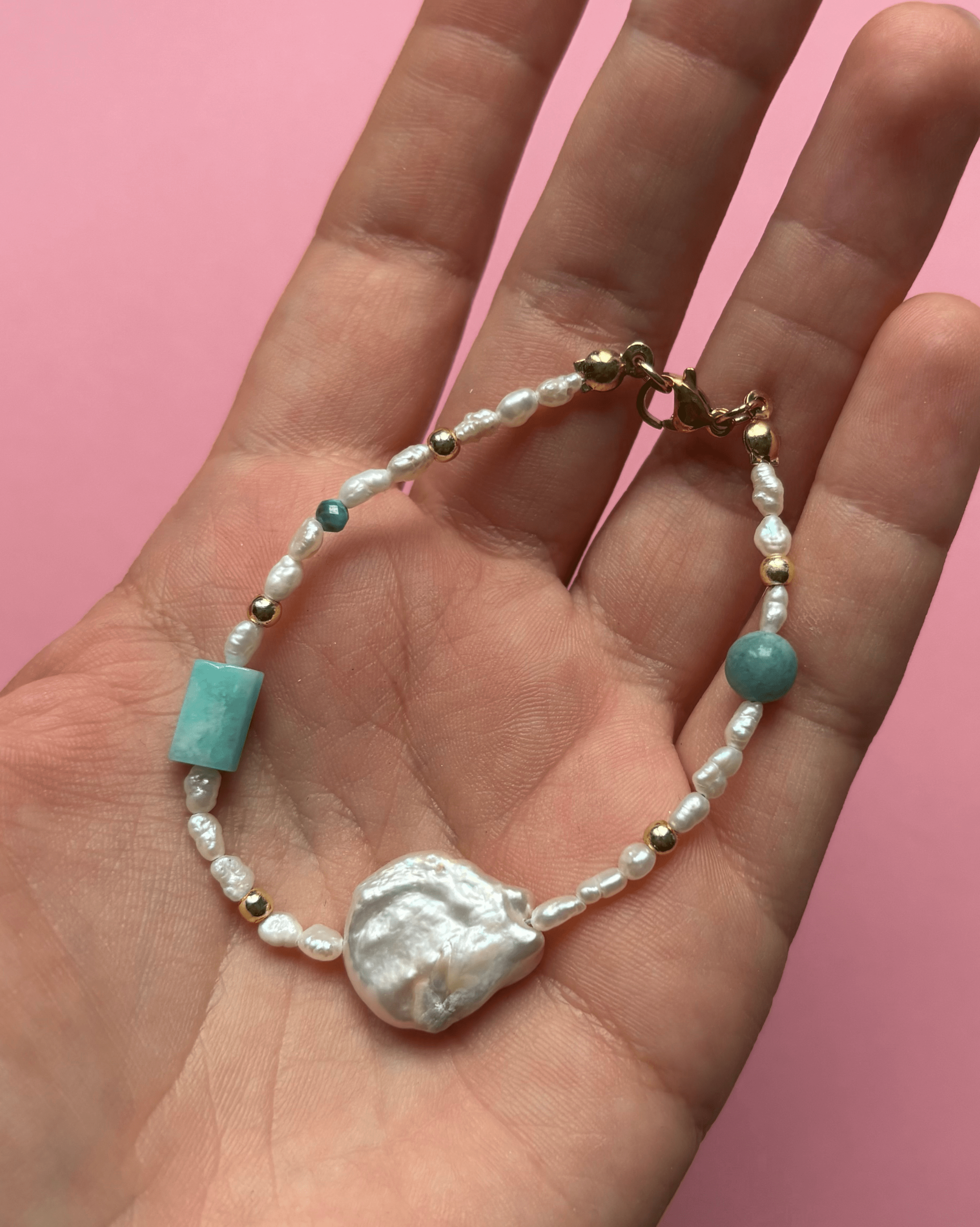 Bransoletka z pereł z amazonitem