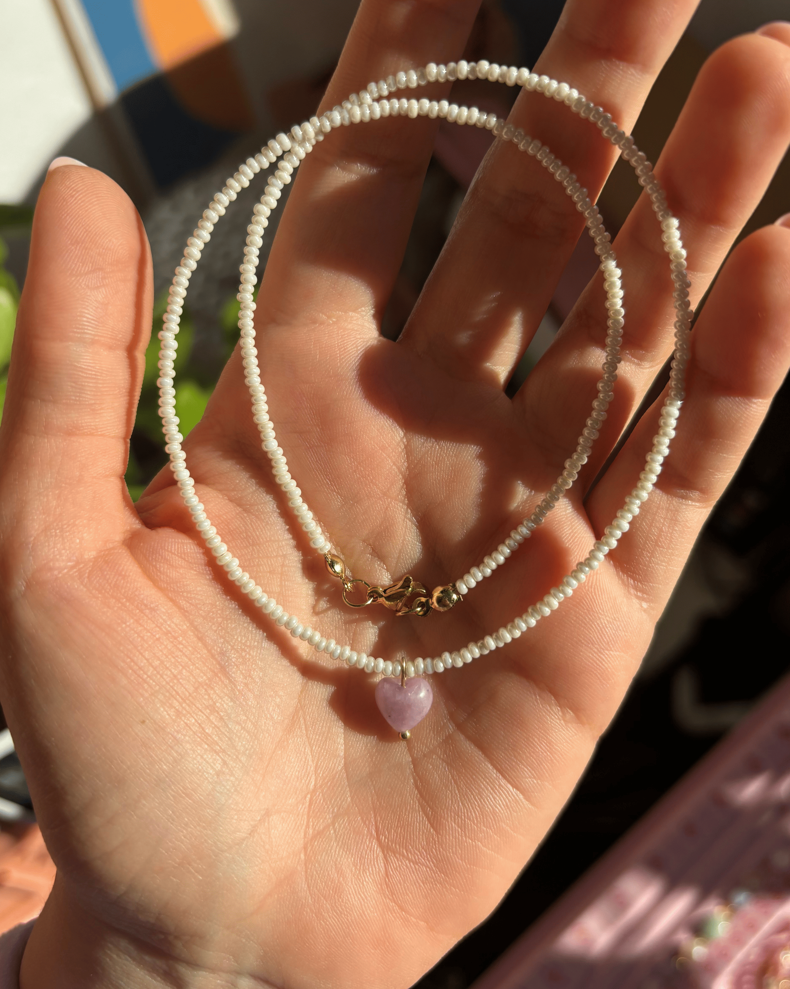 Materiały: szklane koraliki, serce z fosfosyderytu